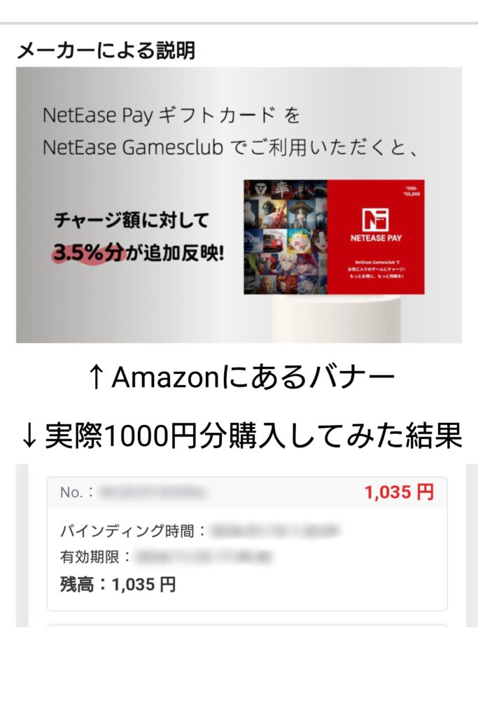 AmazonでNetEase Payギフトカード購入すると、NetEase Payが3.5%増量!