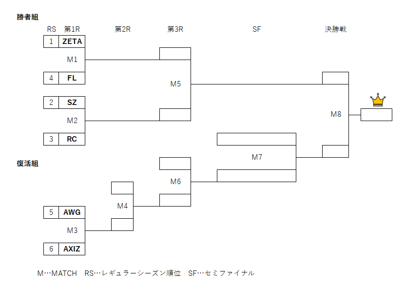 従来のメンバーvanpyi・dolisu・attoに、COA準優勝を果たした元SSTのalf・kznk・mocchi、元FLで選手兼コーチを務めるsasori、元CGでコーチを務めるlattyという強力メンバーが加わり、新生ZETAが誕生した時から優勝候補と言われ、実際それが現実となり見事優勝を果たしました。